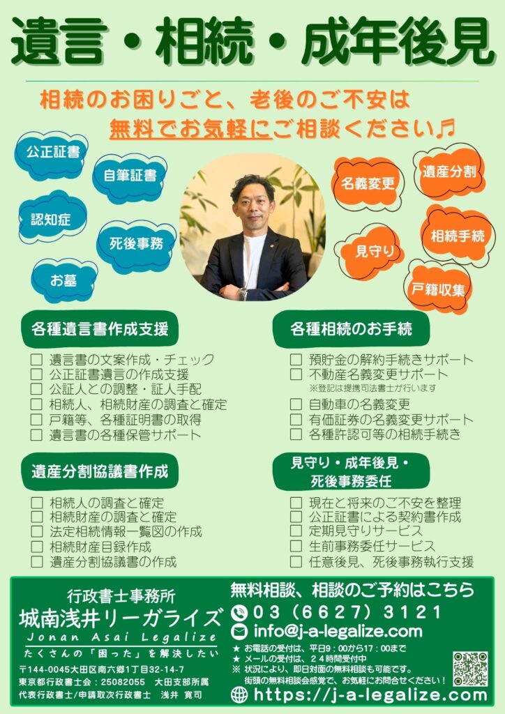 東京都大田区 行政書士事務所 城南浅井リーガライズ